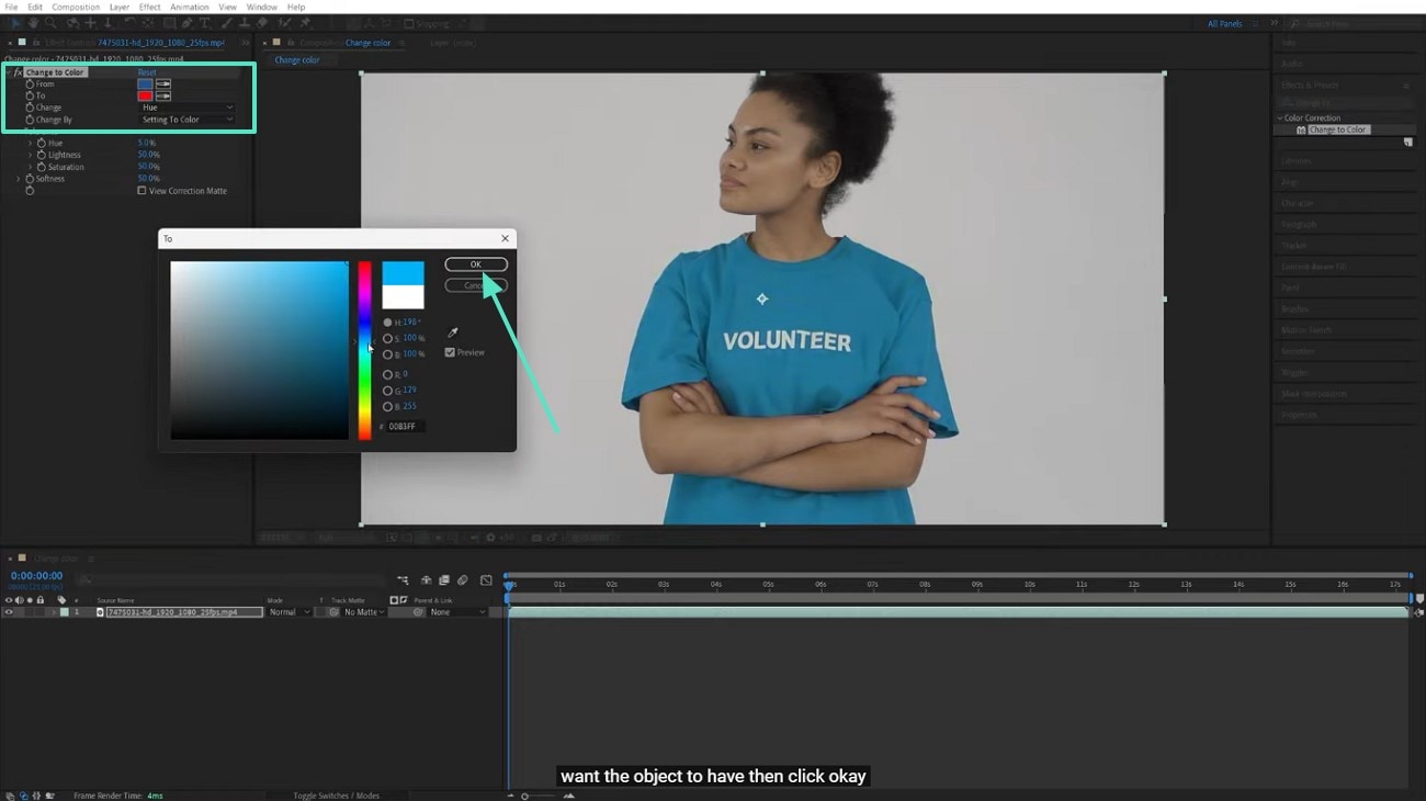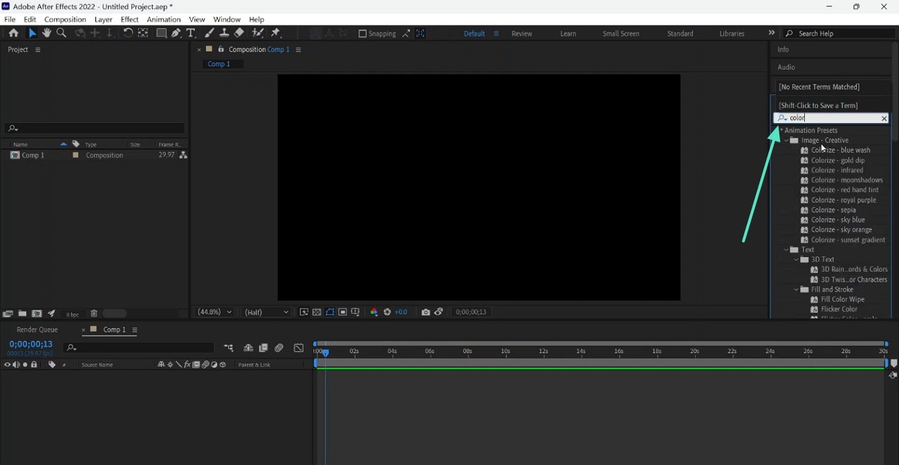 - Instructions. Après avoir importé la vidéo dans l'interface d'After Effects, accédez au panneau de droite et recherchez « Couleur ». Lorsque la liste des préréglages de couleurs apparaît, appliquez l'élément qui corrige la saturation des couleurs.