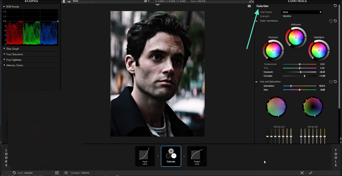 - Étape 4. À l'aide du panneau « Colorista » à droite, ajustez les couleurs manuellement selon vos besoins.