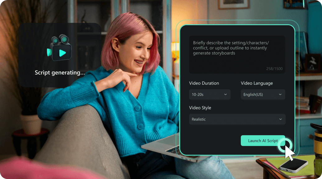 Que vous soyez un créateur, un spécialiste du marketing, un éducateur ou un cinéaste, le générateur de scripts à vidéos AI de Filmora vous permet de générer rapidement des vidéos AI à partir de scripts. Aucune expérience de conception ou d'édition requise. Choisissez parmi deux modes intelligents: