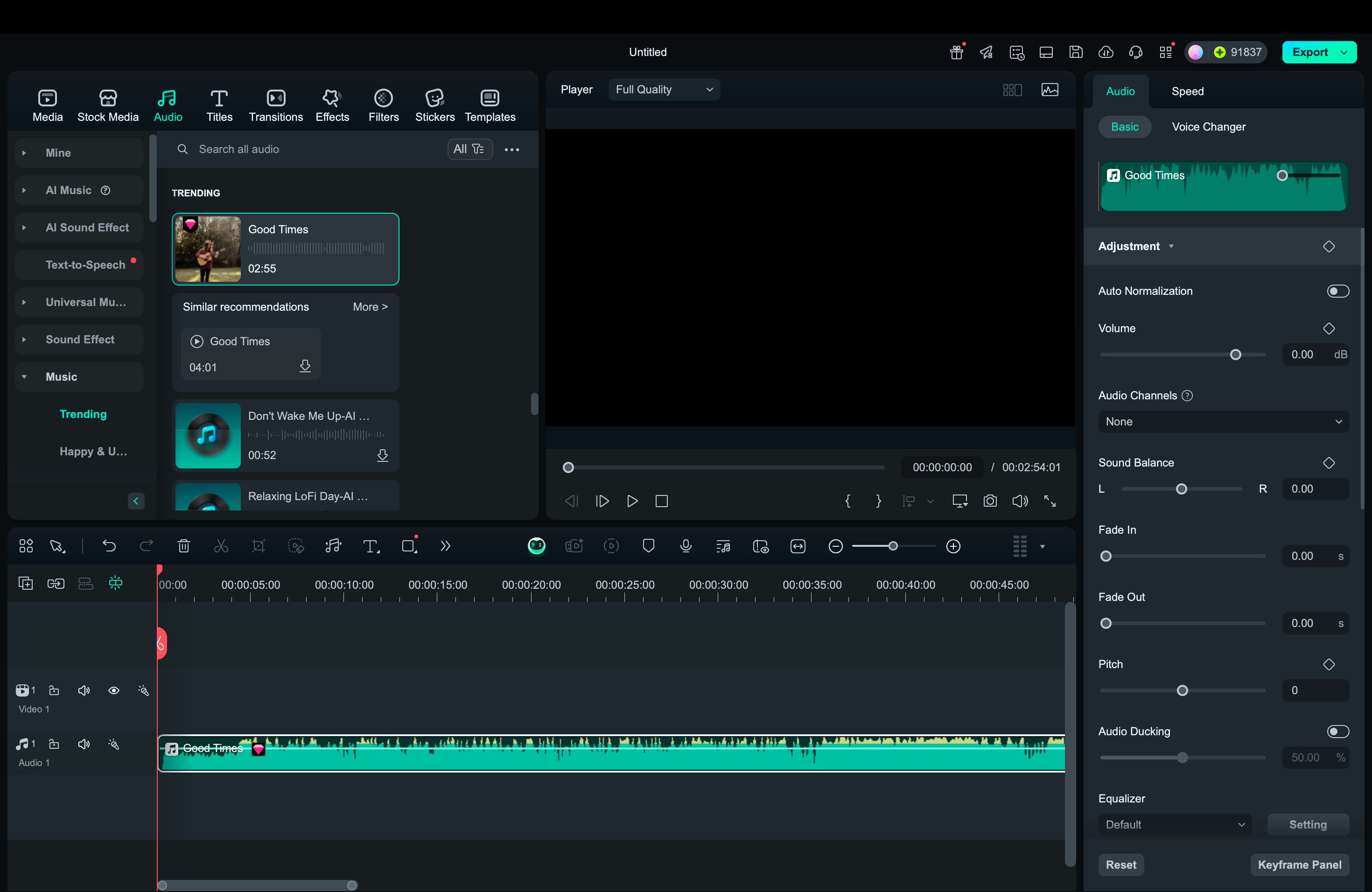 | Outils d’édition audio | Timeline multipiste, suppression de bruit IA, réglage de la tonalité, suppression de la voix | Contrôle du volume de base et fondus entrant/sortant ; pas de séparation de la voix ni de tonalité |