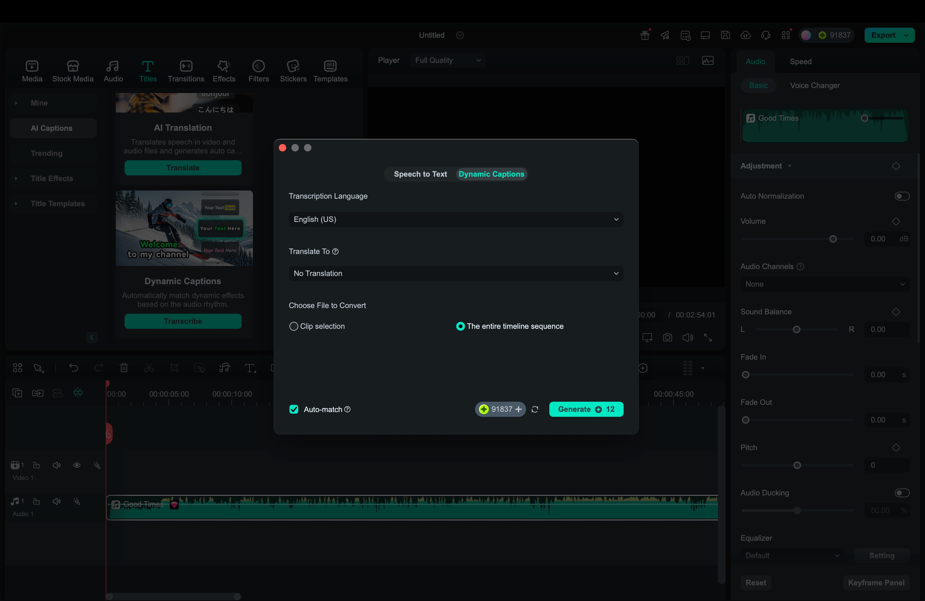 Sélectionnez la langue de votre audio ou laissez Filmora la détecter automatiquement. Activez des outils intelligents comme Surlignage IA pour mettre en valeur les paroles. Vous pouvez également activer Sous-titres bilingues si vous voulez des paroles dans deux langues.