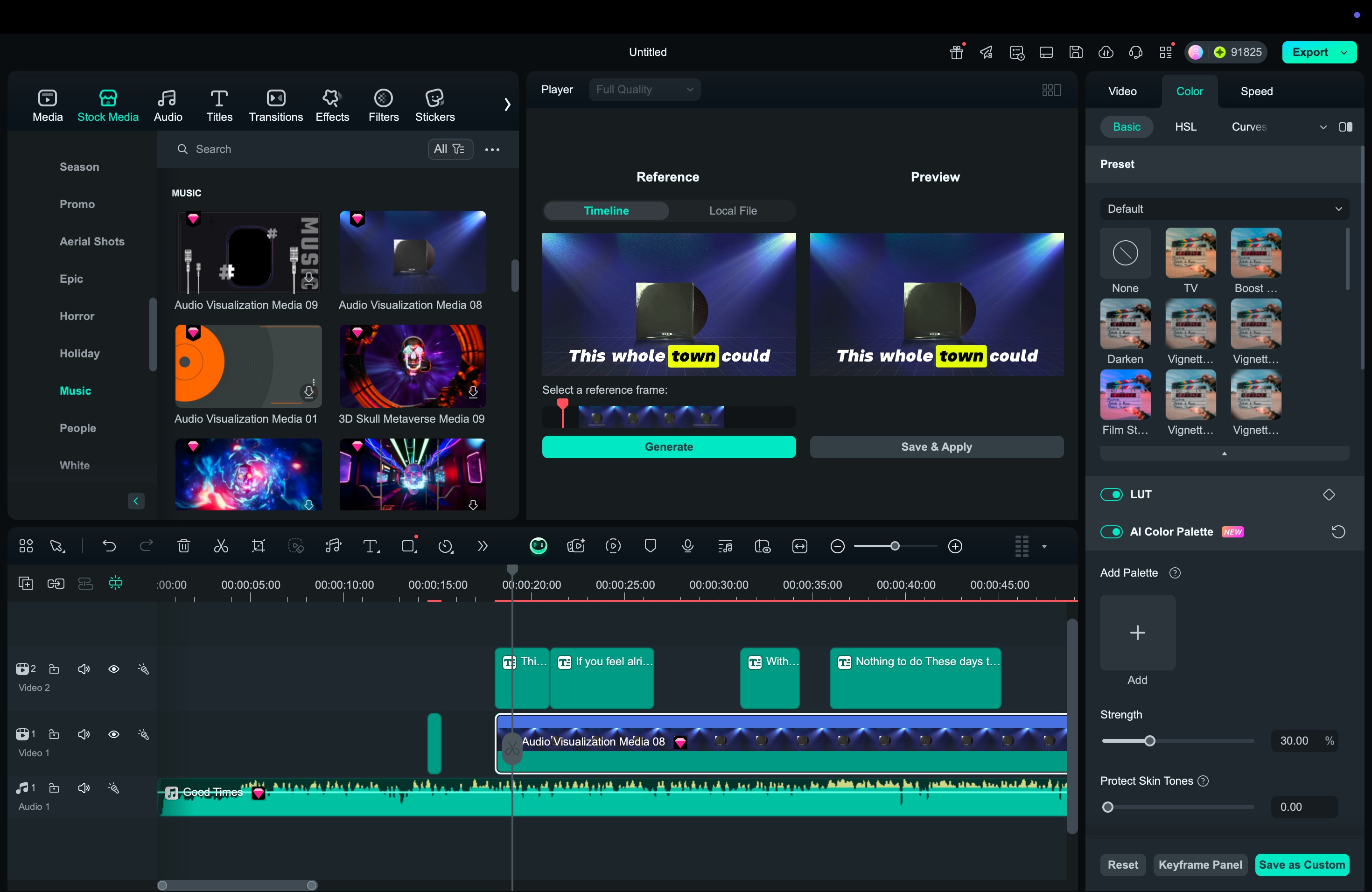 | Effets et stylisation visuels | Ajouter des visualiseurs de paroles, des superpositions, des transitions et des arrière-plans assortis manuellement | Filtres en un clic, Emoji IA et autocollants intelligents pour correspondre à l’ambiance ou au ton |