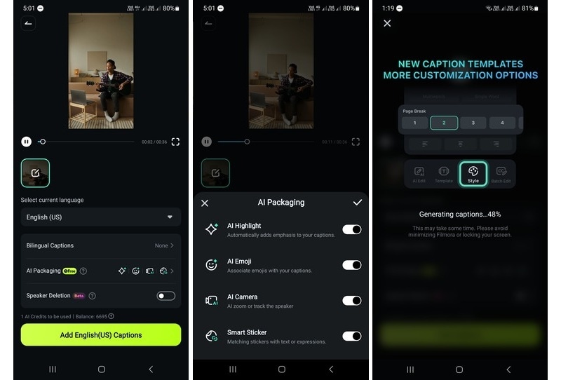 Dans l’ensemble, les étapes pour créer des vidéos karaoké avec l’application mobile Filmora sont similaires à la version de bureau. Cependant, la création d’une vidéo de paroles karaoké sur mobile est beaucoup plus rapide et plus simple comparée au montage sur ordinateur.