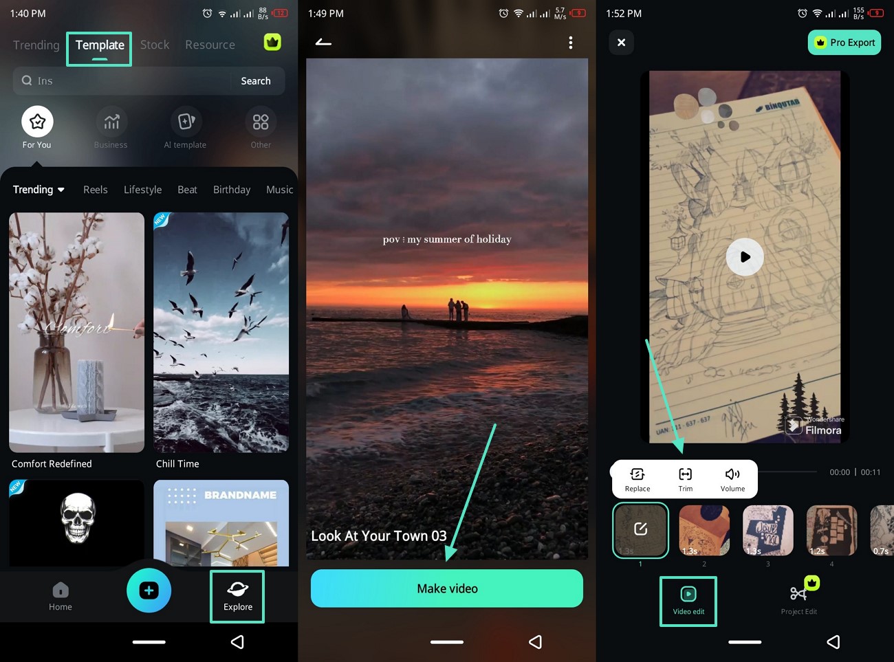 L'application Filmora (Android/iOS) propose des modèles exceptionnels pour différentes occasions. Les influenceurs peuvent choisir parmi une catégorisation diversifiée, couvrant des sujets tels que les Reels, le lifestyle et bien d'autres. Cette application vous permet de remplacer, de découper et de personnaliser le volume des clips selon vos besoins. Les utilisateurs peuvent donc suivre ces étapes et apprendre à obtenir plus de modèles que les thèmes iMovie :