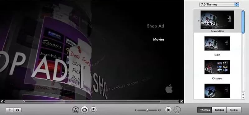 - Étape 1. Lancez l'outil iDVD, puis accédez à « Choisir un Section « Thème » et choisissez l'un des thèmes, de « Révolution » à « Center Stage ».